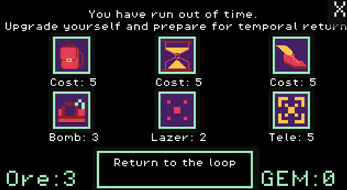 Time is broken. You’re a robot trapped in a time loop. Each cycle, dig for resources to make the next loop easier. Build a tower to reach your spaceship and repair the time machine before the loop resets again.